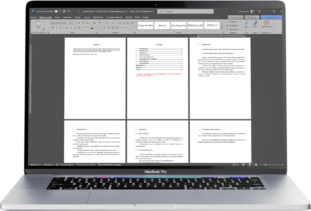 Receba modelos validados para todos os tipos de trabalhos (TCC, artigo, monografia, projeto, relatório de estágio…) e estruturas prontas com a indicação do que você deve escrever em cada parte do trabalho. É só baixar os modelos, copiar e editar para o seu tema.
